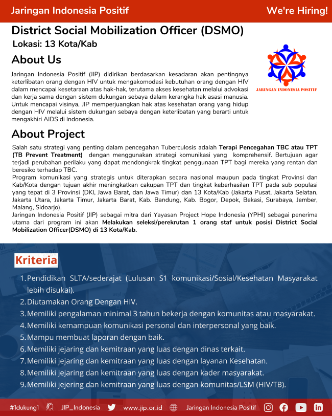 Lowongan District Social Mobilization Officer (DSMO) LowonganBy Bayu KaryadiMay 23, 2023Status: Close