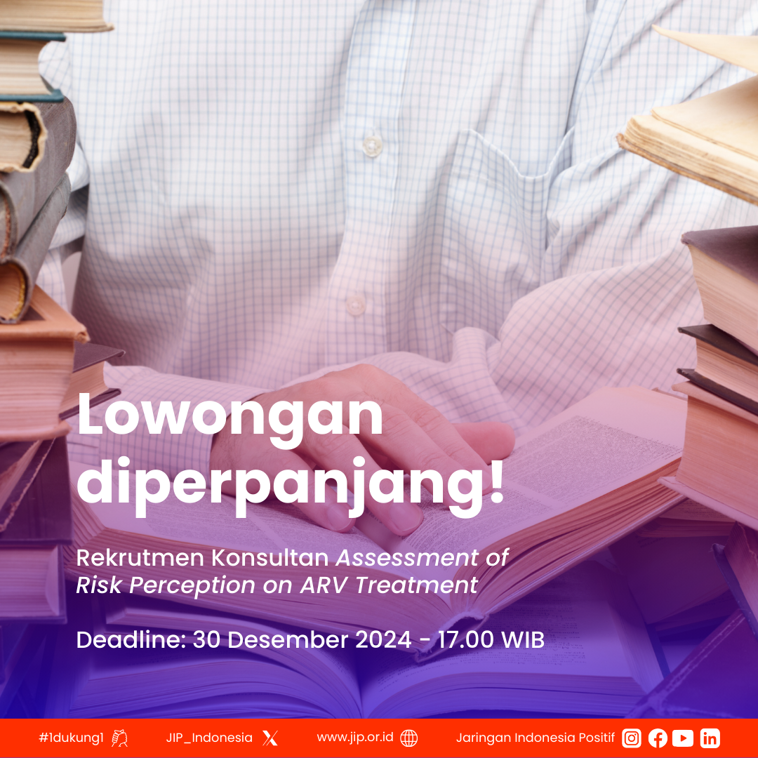 Lowongan kerja rekrutmen konsultan Assessment of Risk Perception on ARV Treatment diperpanjang ke 30 Desember 2024!