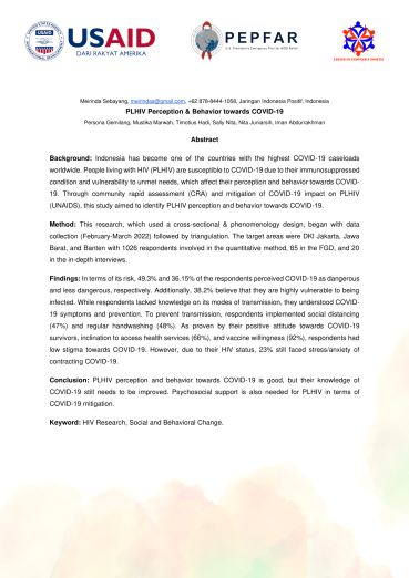Adaptation of HIV Care, Support, and Treatment (CST) Service during COVID-19 Pandemic in Indonesia October 23, 2023 Baca selengkapnya