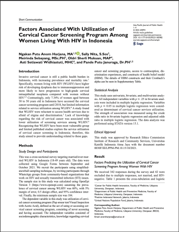 Factors Associated With Utilization of Cervical Cancer Screening Program Among Women Living With HIV in Indonesia August 14, 2023 Baca selengkapnya